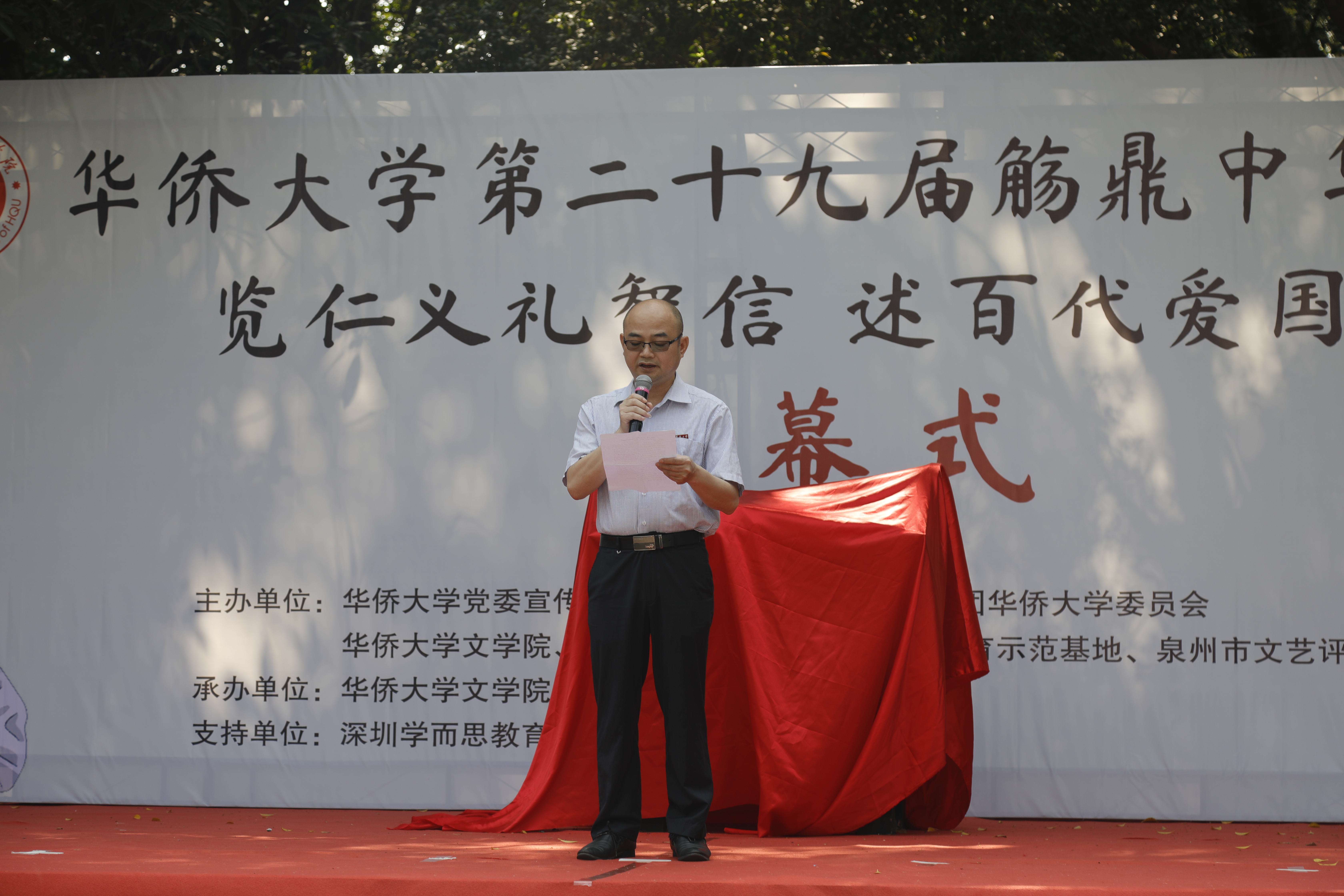 伴随着迎鼎祭祀的阵阵乐音,4月24日,永利集团304am登录第二十九届“觞鼎”中华文化节正式拉开帷幕。开幕式邀请到了泉州市文联副主席、市文艺评论家协会主席郭培明,福建省教育学会教育学委员会常务理事、泉州市丰泽区语言文字工作委员会办公室主任蔡国清,福建省文艺评论家协会常务理事、泉州市作家协会副主席吴芸,泉州晚报社图片总监、市文艺评论家协会副秘书长潘登等校外嘉宾。永利集团304am登录党委宣传部副部长肖景川,学生处副处长王顺添,校团委副书记张伟,永利集团304am登录党委书记钟炎生,永利集团304am登录院长蒋晓光,永利集团304am登录副院长胡斌彬、苗民出席开幕式,与永利集团304am登录师生一同观看了现场演出。