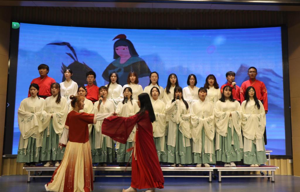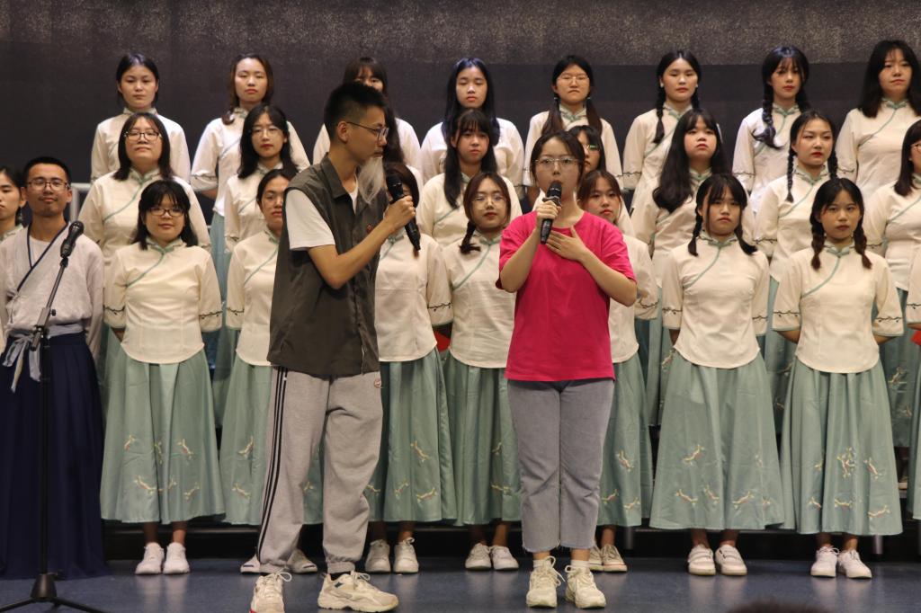 “诗意中国”篇章由2019级汉语言文学2班一曲《烟雨行舟》和2019级应用语言1班《暗香疏影》组成,五千年故事里的春与秋,在脚下的这片土地流转,我们的诗意永远充盈。“浩然中国”篇章由2020级中国语言文学类2班一出《花木兰》与2019级汉语言文学1班一幕《屈原》组成,通过古今时空的碰撞诉说一脉相承的爱国之情。“追梦中国”篇章由2020级中国语言文学类3班《不忘民族根·不停追梦心》和2020级中国语言文学类1班《我以我血荐轩辕》组成,倾诉拳拳爱国情,揭开了追梦篇章,激励着吾辈自强。
