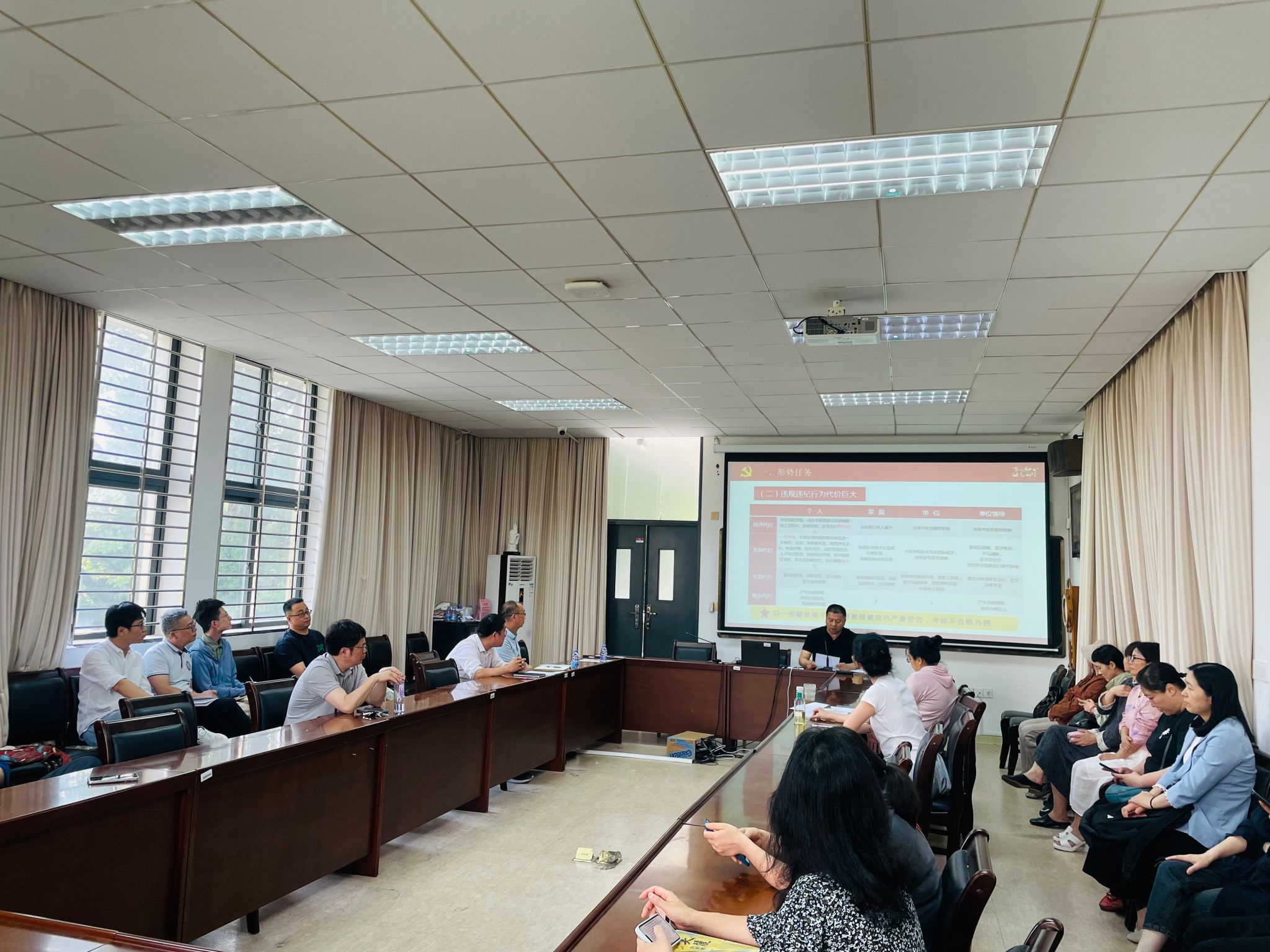 会上,院长蒋晓光通报了党的十九大以来学校系统内违纪违法案件的查处情况,重点围绕师德师风建设、科研经费管理、生活作风要求等关键领域,结合典型案例进行警示教育,引导全体教职工切实强化法纪意识,知敬畏、存戒惧、守底线。