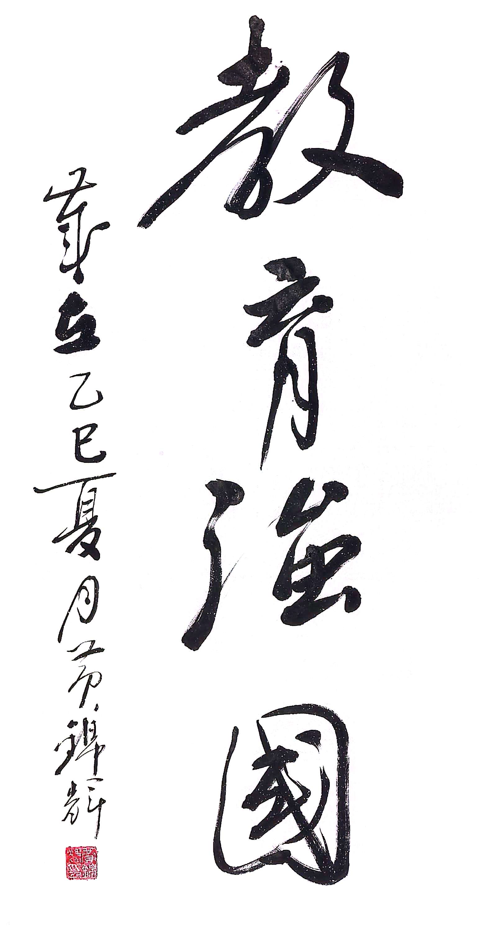 访谈尾声,黄老现场即兴创作,泼墨绘就一幅“教育强国”书法作品,带领现场人员近距离感受书法艺术的魅力。“教育强国”四个大字苍劲有力,不仅是书法艺术的展现,更表达了万千教育工作者对教育事业的共同追求。